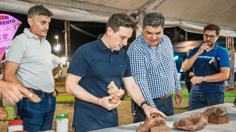Tras el acto protocolar, la comitiva oficial recorrió el predio de expositores, donde interactuaron con el público y pudieron apreciar productos regionales, artesanías y muestras de calcitas en su estado natural.