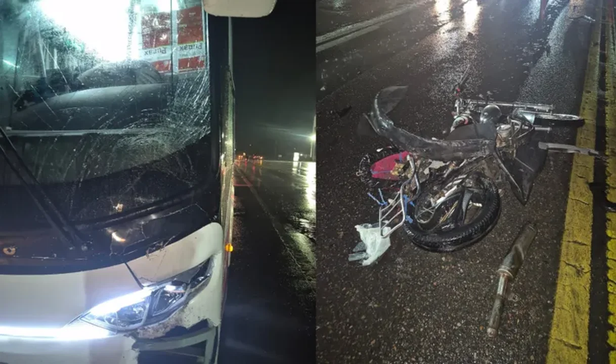 Un grave siniestro vial que involucró un colectivo, una motocicleta y un automóvil se registró en la noche del sábado. El impacto ocurrió en medio de una lluvia torrencial que afectaba la visibilidad, dejando como saldo al conductor del rodado menor con lesiones de consideración.